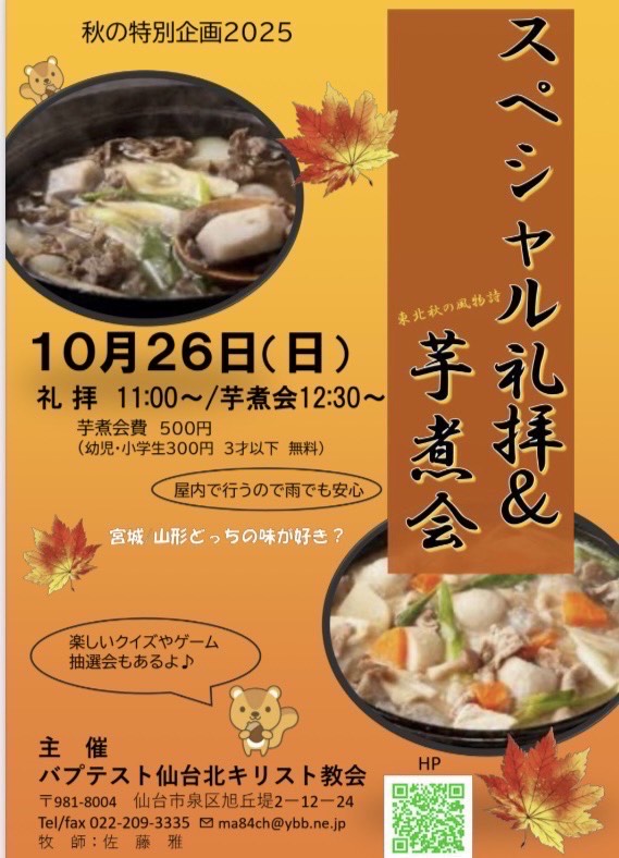 秋の特別企画!「スペシャル礼拝&芋煮会」